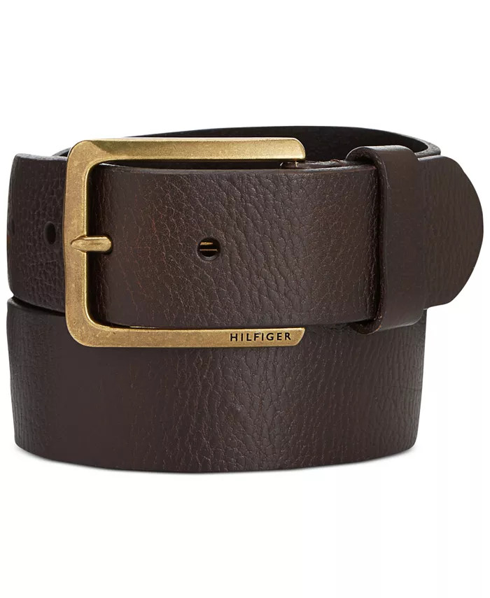 Tommy Hilfiger Men's Heavy Brass Buckle Leather Belt