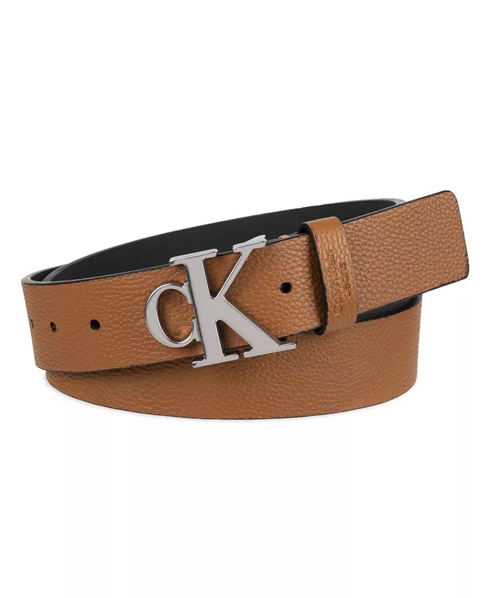 Calvin Klein Men's Logo Plaque Buckle Fashion Jean Belt