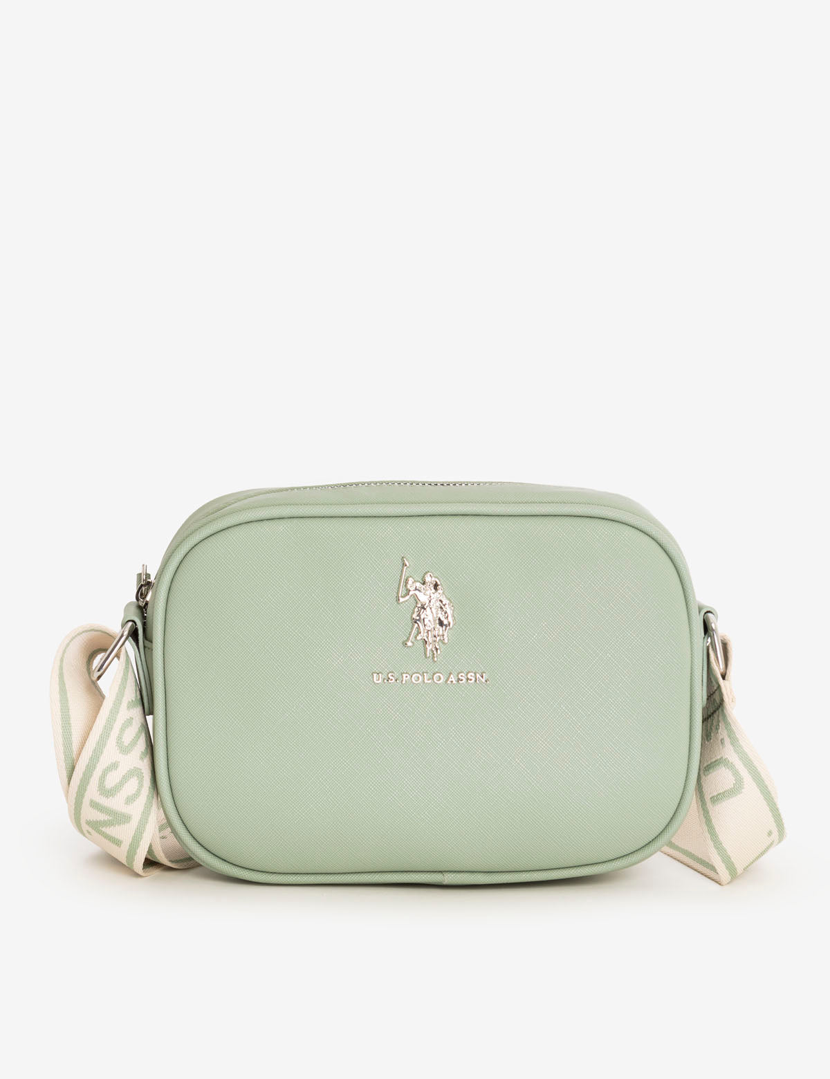 The CLASSIC ZIP CROSSBODY BAG from U.S. Polo Assn. is the perfect combination of style and function. A small crossbody bag with logo hardware and web strap, it's ideal for anything from date nights to daily errands. This style features Saffiano PU, an interior accessory pocket and a top zip closure with a branded zipper pull. Its classic styling is durable and timeless, making this a must-have accessory.