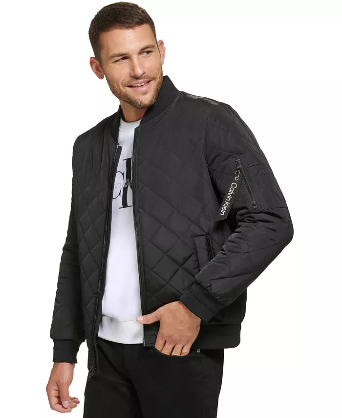 Calvin Klein Men's Quilted Baseball Jacket With Rib-Knit Trim