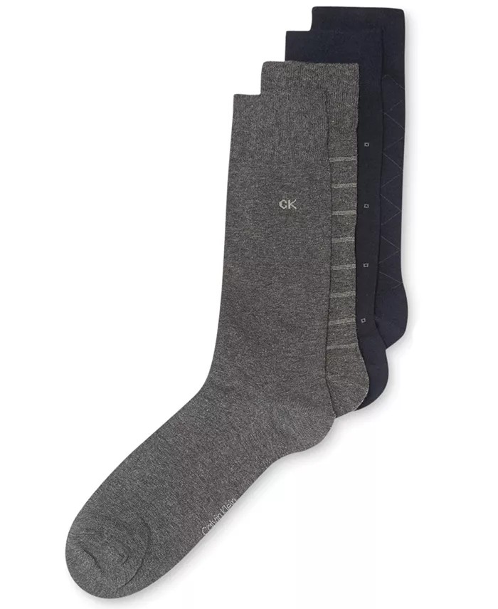 This polished four-pack from Calvin Klein has something for everyone with a windowpane plaid, neats pattern and two solids.
