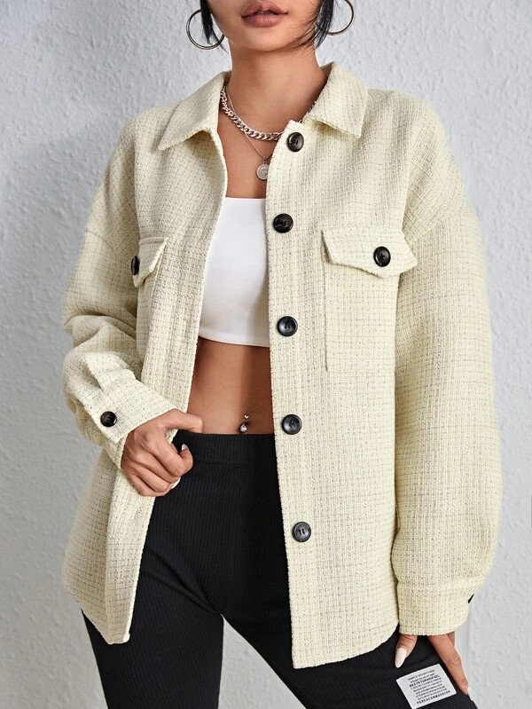 Shein Flap Pocket Drop Shoulder Tweed Overcoat