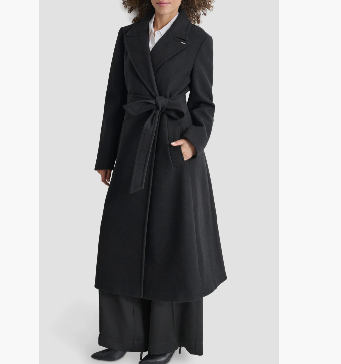 DKNY Tie Belt Long Coat