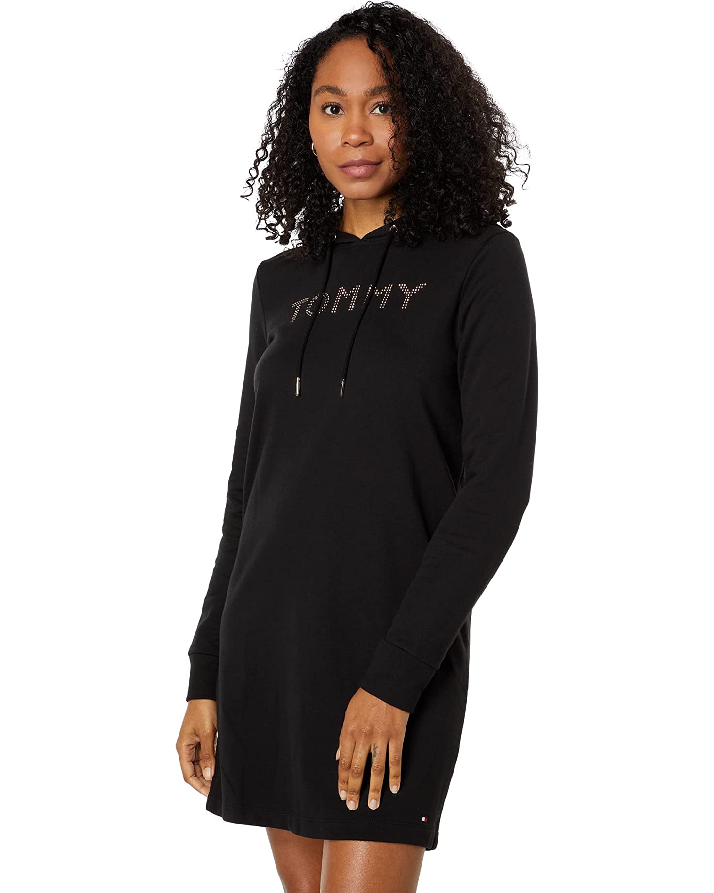 Designed to provide you with all-day comfort and complement your cool and casual style, the Tommy Hilfiger® Logo Knit Hoodie Dress is a must-try.