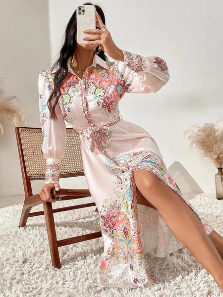 SEN Floral & Paisley Button Through Belted Shirt Dress