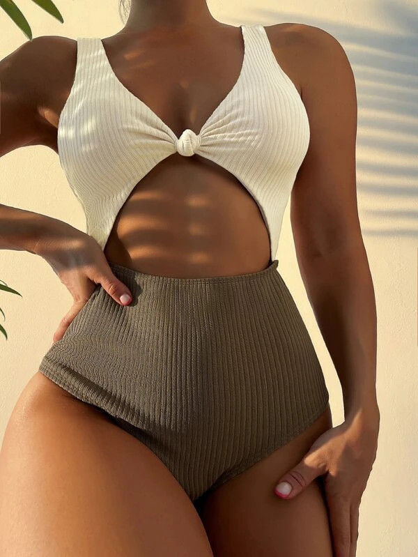 SEN Color Block Cut-out One Piece Swimsuit