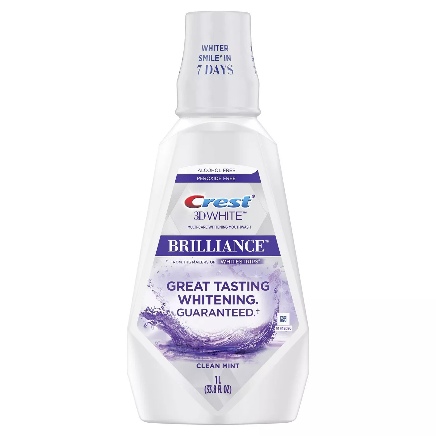 Crest 3D White Brilliance Alcohol Free Whitening Clean Mint Mouthwash - 1L