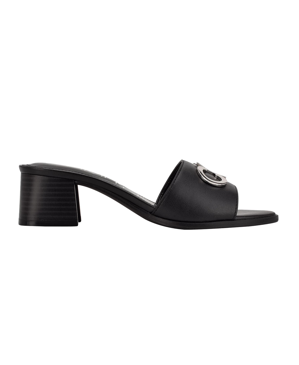 Set a timeless aesthetic wearing the Calvin Klein® Audra featuring a classic heeled slip-on sandal constructed with a well bedded footbed for all day wear boasting branding details on padded upper.